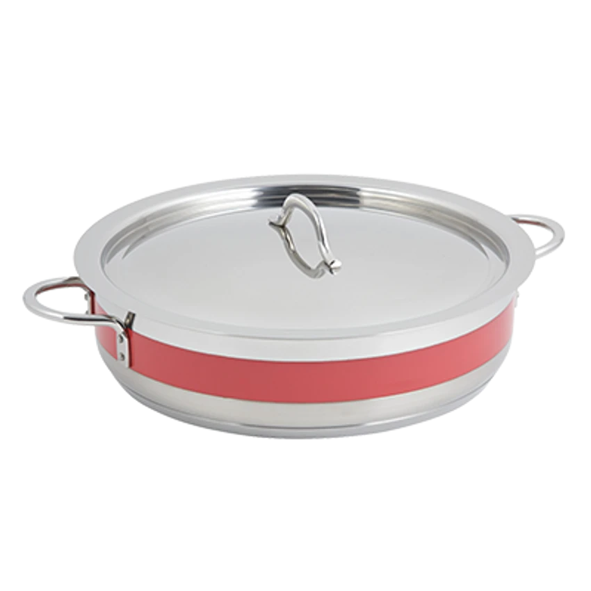 Classic Country French Pot, 9 qt., 14-3/4″ dia. x 3-3/8″H, round, with cover, handled, induction bottom, stainless steel, red, NSF
