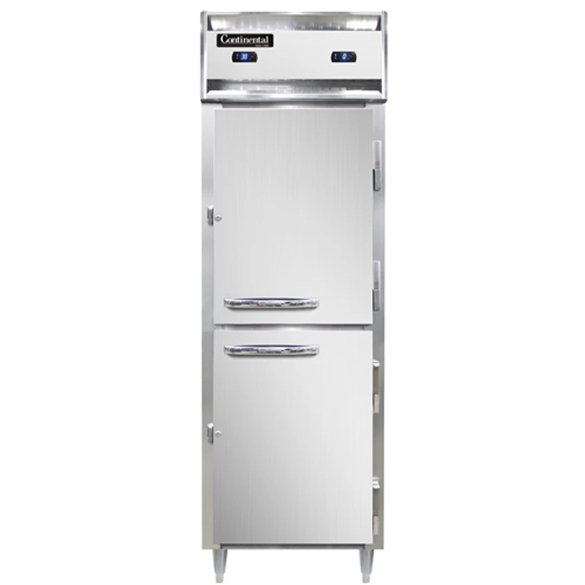 Designer Line Refrigerator/Freezer, reach-in, one-section, self-contained refrigeration, stainless steel exterior & interior, standard depth cabinet, narrow half-height solid doors, cylinder locks, electronic control with digital display, hi-low alarm, R290 Hydrocarbon Refrigerant, dual 1/5 & 1/4 HP compressors, cETLus, NSF, Made in USA