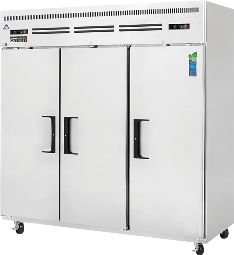 The Everest ESRF3 Refrigerator/Freezer Combo offers a space-saving solution for kitchens with limited space. Its 46 (R) and 22 (F) cubic feet capacity can accommodate various food and drinks. It has nine wire shelves that can store your food items at a low temperature, keeping them fresh until use.