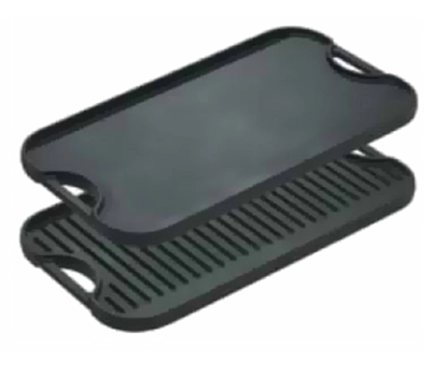 Pro-Grid Grill/Griddle, 20″ x 10-1/2″, rectangular, double burner, reversible, (1) smooth surface & (1) ribbed surface, with handles, raised edges, stove top/grill/campfire/oven safe, seasoned with oil, hand wash only, cast iron, Made in USA