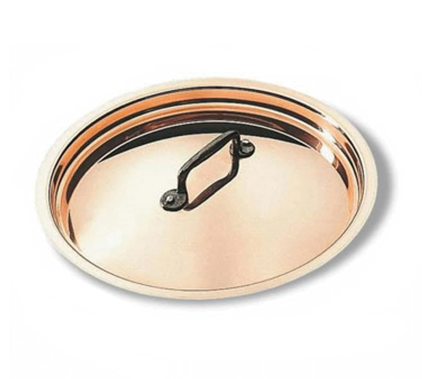 Bourgeat Lid, 7-1/8″ dia., cast iron handle on top, stainless steel interior, smooth copper exterior, made in France