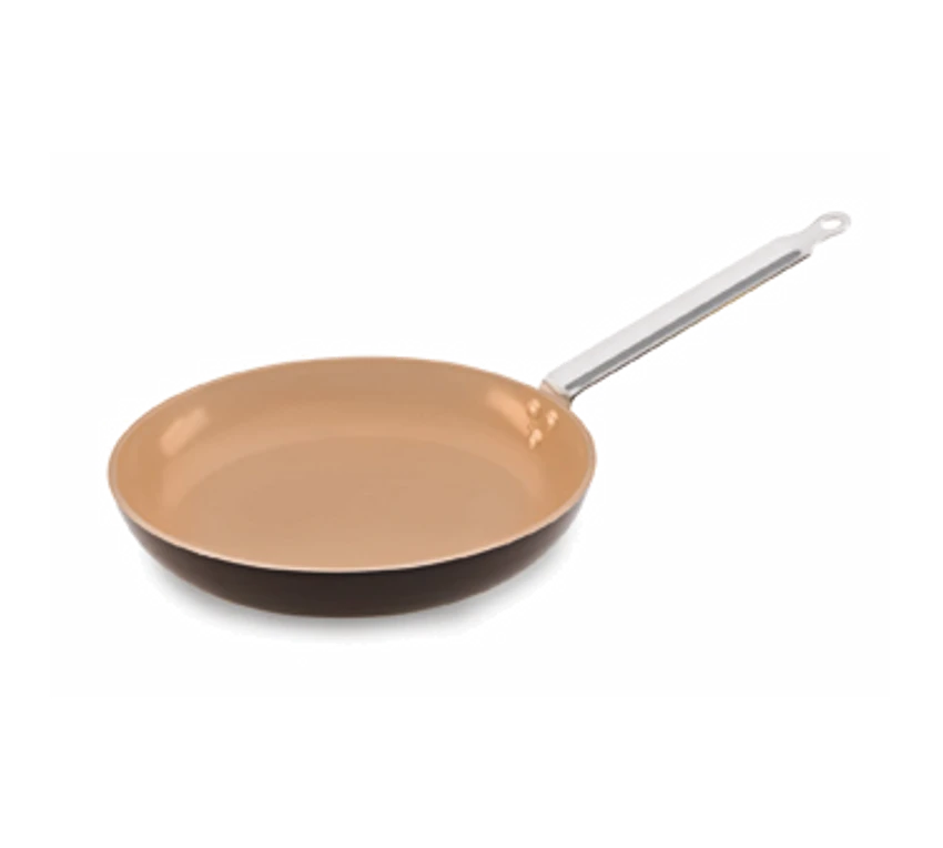 Elite Fry Pan, 12-1/2″, non-stick, riveted stainless steel handle, hanging handle loop, lacquered exterior, ceramic coating, (PTFE Free), suitable for gas, electric, ceramic, halogen, and induction hobs, (made in France)