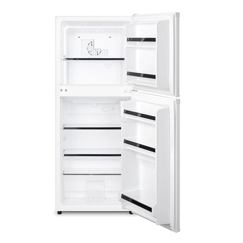 Summit Refrigerator/Top Mount Freezer, 4.8 cu. ft., 18-3/4″W x 23″D x 46″H, reversible doors, adjustable shelves, door storage, crisper, frost-free, sealed back, white exterior, R600a hydrocarbon refrigerant, 115v/60/1-ph, 0.9 amps, ADA compliant design, cULus, ENERGY STAR® (Household)