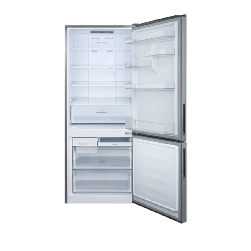 Refrigerator-Freezer, reach-in, one-section, built-in or freestanding, rear mount self-contained refrigeration, 27.63″W x 26.75″D x 67.63″H, 14.8 cu. ft. capacity, bottom freezer storage, (2) left-hinged solid doors, (3) adjustable glass shelves, (3) freezer drawers, (1) crisper, bottle rack, frost-free defrost, independent controls, digital thermostat, LED interior lighting, fingerprint resistant, platinum finish, white interior, level legs, R600a Hydrocarbon refrigerant, 115v/60/1-ph, 2.5 amps, ETL, cETL, (Residential)