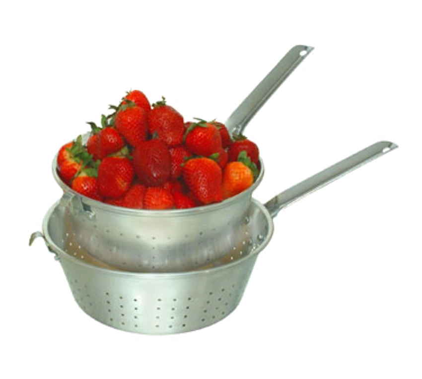 Strainer, 8″ dia, with handle & hook, aluminum, dozen