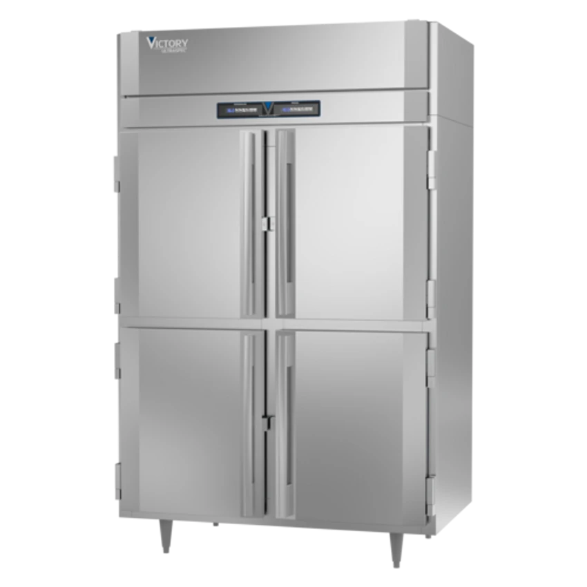 UltraSpec™ Series Refrigerator/Freezer, Reach-in, two-section, self-contained refrigeration, 21.01 cu. ft. capacity per section, (4) half height solid hinged doors, (6) silver freeze (chrome-style) wire shelves, stainless steel exterior, aluminum interior, standard depth cabinet, TOUCH POINT™ electronic temperature control/indicators, LED lighting, expansion valve technology, Santoprene door gaskets with 2 year warranty, stainless steel breakers, top mounted compressors, refrigerator 1/3 HP & freezer 3/4 HP, cULus, UL EPH Classified, UL-Sanitation, MADE IN USA