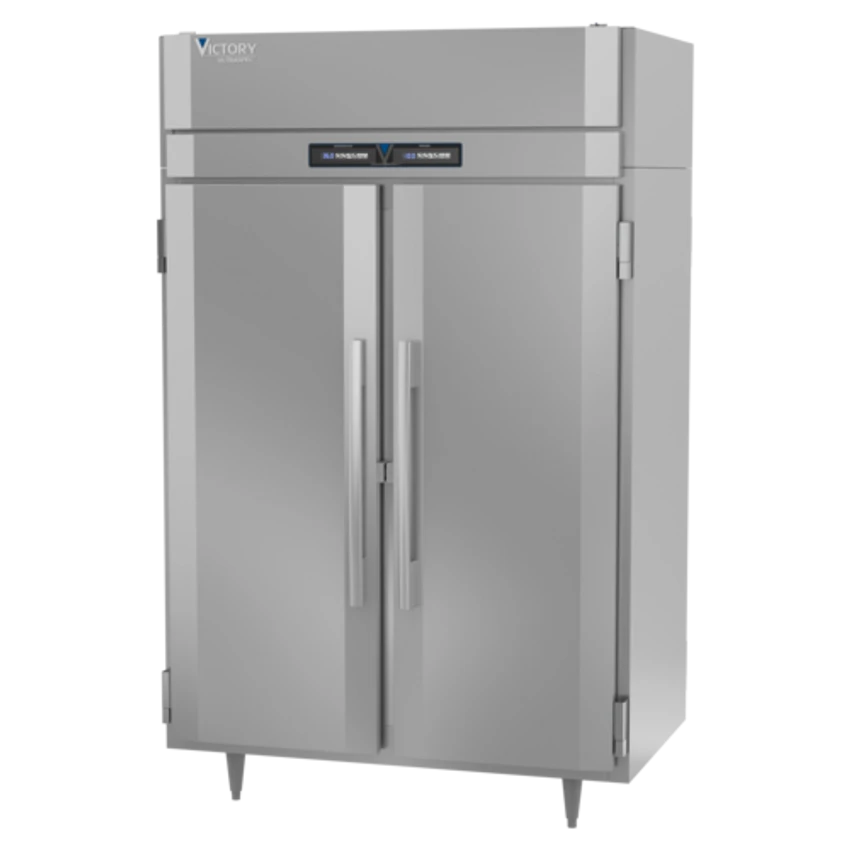 UltraSpecâ„¢ Series Refrigerator/Freezer, Pass-thru, two-section, self-contained refrigeration, 22.9 cu. ft. capacity per section, (4) full height solid hinged doors, (6) silver freeze (chrome-style) wire shelves, stainless steel exterior, aluminum interior, standard depth cabinet, TOUCH POINTâ„¢ electronic temperature control/indicators, LED lighting, expansion valve technology, Santoprene door gaskets with 2 year warranty, stainless steel breakers, top mounted compressors, refrigerator 1/3 HP & freezer 3/4 HP, cULus, UL EPH Classified, UL-Sanitation, MADE IN USA