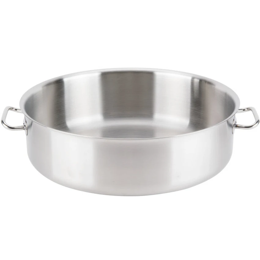 Intrigue Brazier/Casserole, 24 quart (22.7L), 18/8 stainless steel body, 1/4″ aluminum & stainless steel clad bottom, for gas, electric, induction & ceramic cooktops, combination satin/mirror finish, solid loop welded handles, inside diameter 18.1″, inside depth 5.4″, body thick .059″, NSF, imported, Jacob's Pride Collection, Limited Lifetime Warranty