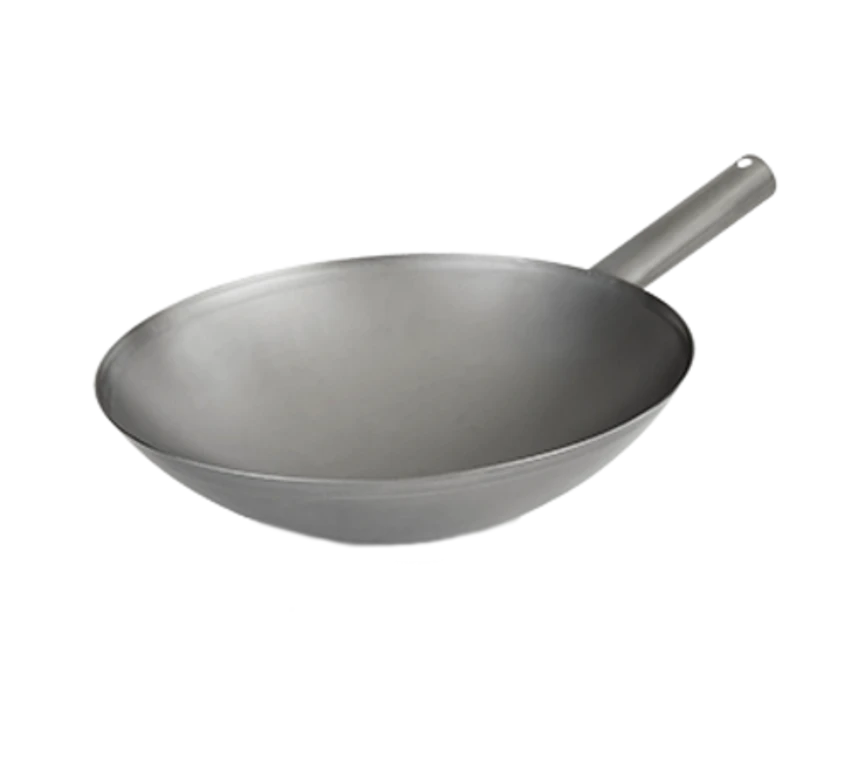 Induction Wok Pan, 14″ dia. x 3-7/8″H, 18 gauge carbon steel wok pan with tubular handle for use with Vollrath 695831 induction wok range. USA made