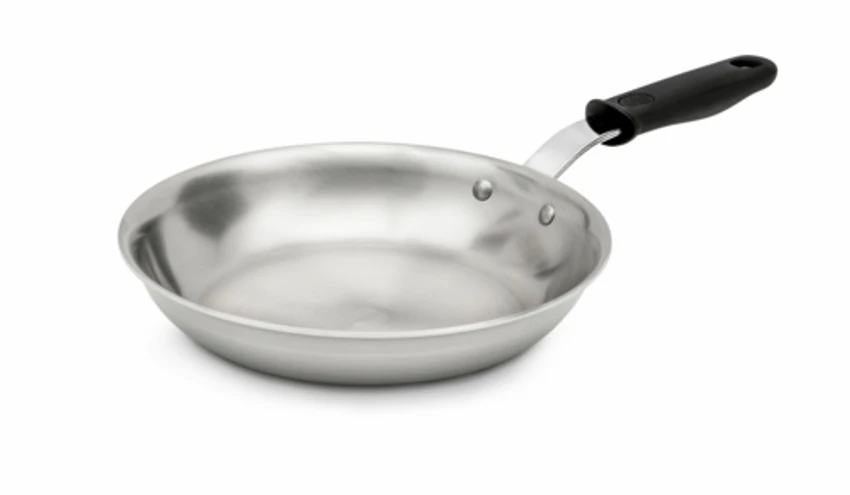 Tribute® Fry Pan, 12″ dia. (top) x 2-1/2″H x 9-3/4″ dia. (bottom), bonded TriVent® silicone insulated handle, EverTite™ Riveting System, handle rated at 450° F for stovetop or oven use, natural Finish interior, 3-ply construction (18/8 stainless steel interior, 3004 10 gauge alum core bottom & side walls, 18-0 stainless steel exterior), induction ready, NSF, Made in USA