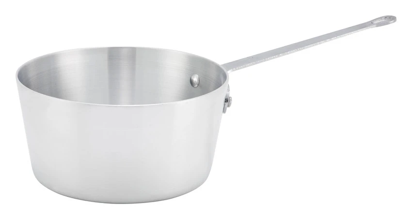 The Winco ASP-5 Sauce Pan is an excellent option for cooking anything that’s mostly liquid. It’s built with a flat bottom and rounded corners, so you can whisk and stir your delicate sauces with ease. It also has a riveted handle that keeps you safe from high heat, allowing you to cook comfortably.
