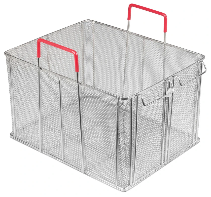 Bulk Pasta Boil Basket, 16-1/4″ x 12-7/8″ x 10″H, rectangular, (2) plastic coated handles (heat safe up to 250F/120C), 18/8 stainless steel
