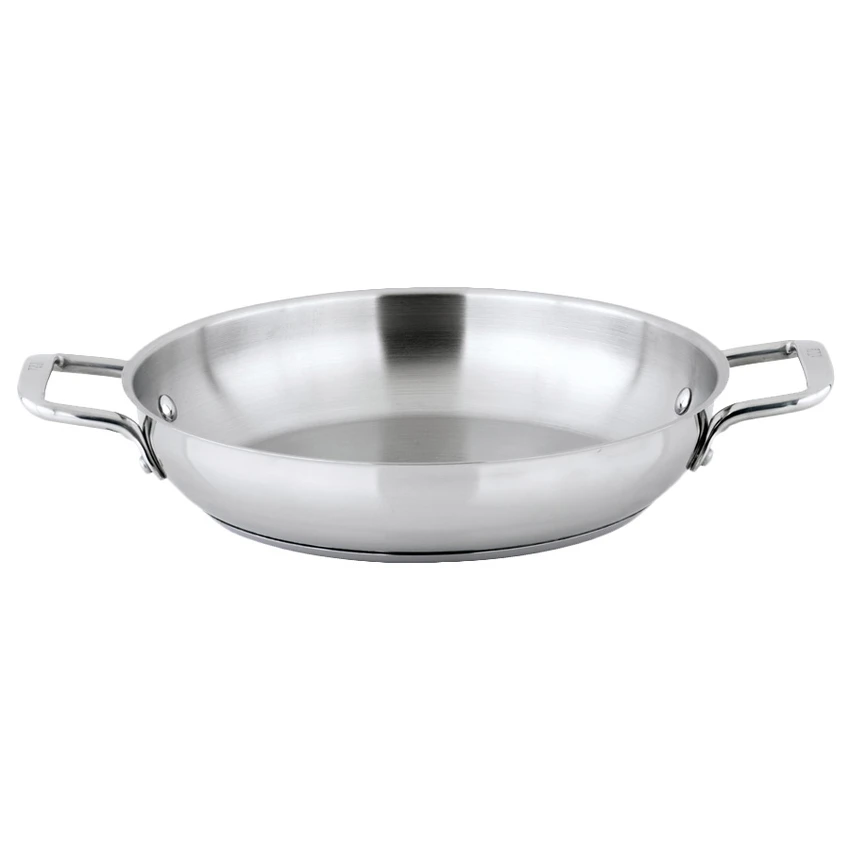 Induction Omelet Pan, 11″ dia. x 2-1/8″H, round, with handles, tri-ply heavy duty bottom with aluminum core, stainless steel, NSF